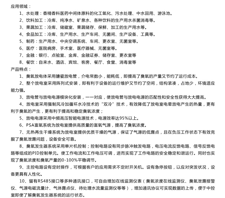 空氣源中型臭氧發(fā)生器參數(shù)列表 |